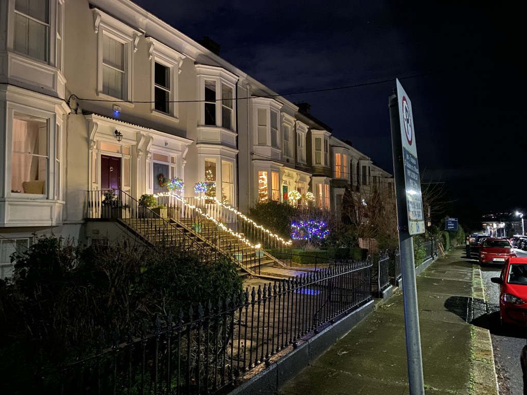 It was long time resident of Dún Laoghaire, Ellen Moiselle, who remarked that walking around the residential streets at night during winter was a joy with all the lights and beautiful decorations that people had put up. She said it was like people were giving gift a gift of beauty to the neighbours and herself and her husband enjoyed talking evening walks during winter admiring how beautiful the town looked.