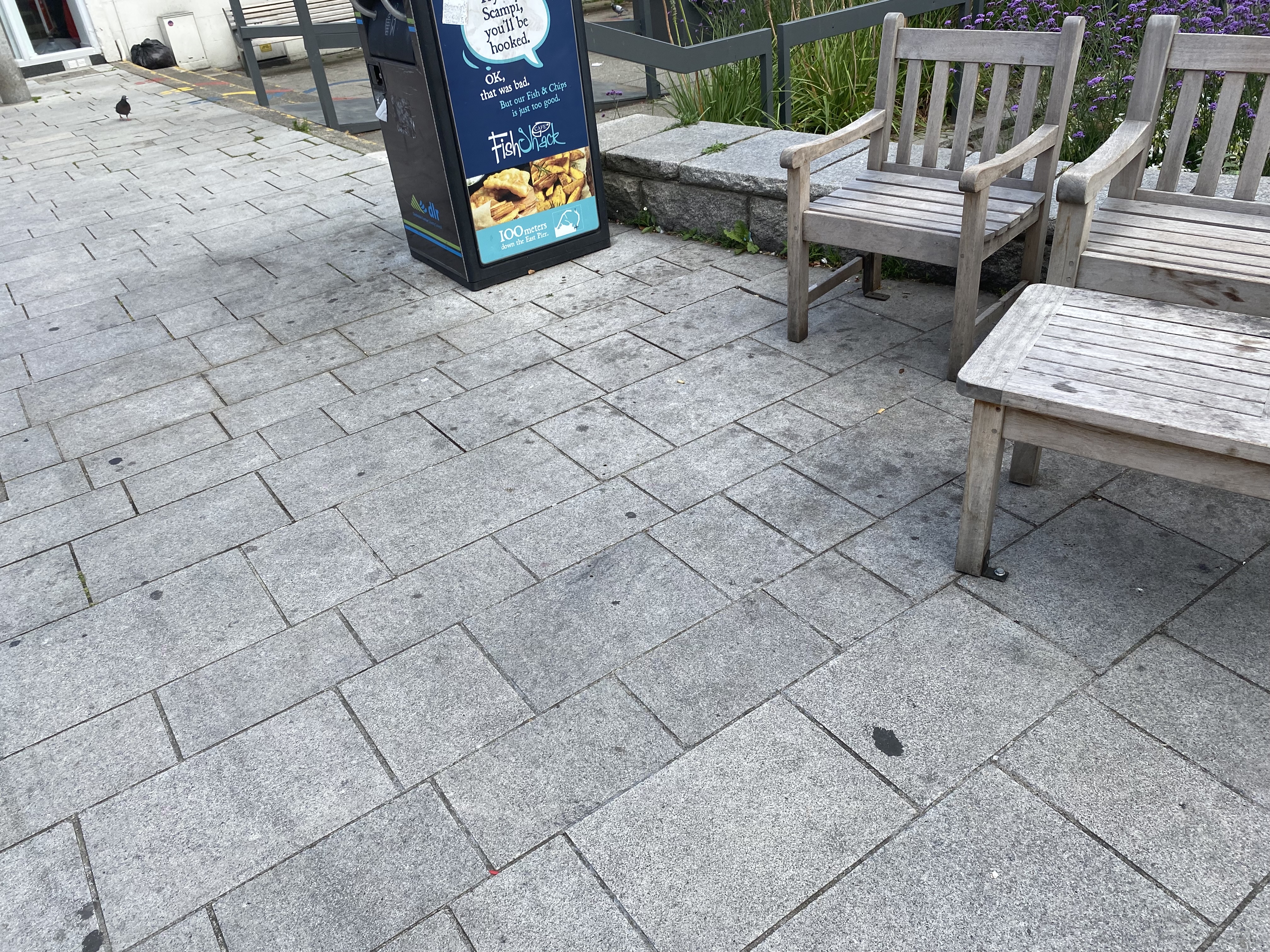 The beautiful weather we had this summer makes Dún Laoghaire town beside the sea one of the most pleasant and picturesque places to live. It also becomes a destination for many visitors who flock to the town in the summer months. Maybe this is the cause of the rise in the amount of dirty and stained pavements around the town?